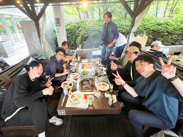 ボーリングで一緒に盛り上がったあとのBBQは、いつも以上に会話も弾みます。